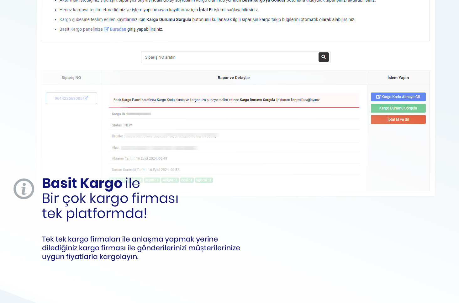 Basit Kargo entegrasyonu ile e-ticaret siteniz ve BasitKargo.com'u optimize ederek işlemlerinizi daha kolay hale getirebileceksiniz.